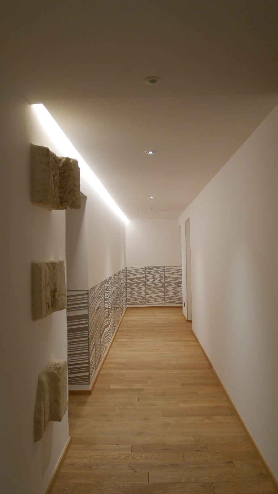 Le premier impact visuel est classique, ancien, mais une seconde lecture plus contemporaine apparait par transparence au travers des vitres, notamment par les éclairages en zigzag visibles en second jour dans le vestibule.